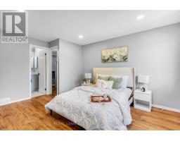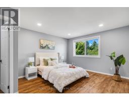This bright and stylishly updated detached home in desirable Leslie Park offers 3 bedrooms plus a basement bedroom or office and 3 baths, with exceptional privacy and no rear neighbours. The spacious foyer with Calcutta ceramic tiles leads up to a large living room with a cozy fireplace, open to the dining area and a kitchen featuring new ceramic tiles, pantry, and a powder room. Upstairs, the primary bedroom includes a walk-in closet and 3-piece ensuite, along with two additional bedrooms and a main full bath. All bathrooms have been redesigned with new vanities and toilets. The finished basement provides a fourth bedroom or office, laundry room, and organized storage. With a drive-down driveway, elevated main and upper levels filled with natural light, and a private fenced backyard with deck and gazebo on a corner lot, this home also includes a newer furnace and A/C (2017), a new garage door opener, and an attached garage with inside entry in a prime location near Baseline Road, transit, shopping, schools, and parks. The property taxes shown are estimates from GeoWarehouse. Some photos have been virtually staged. (id:47351)