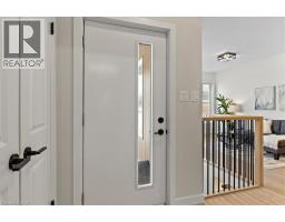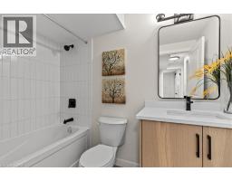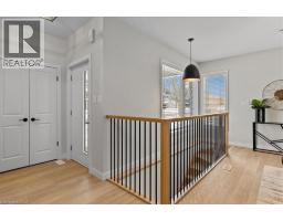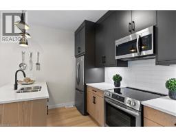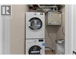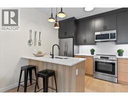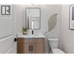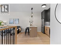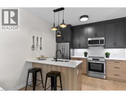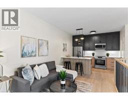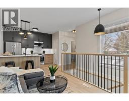 This energy efficient and modern compact unit offers luxury finishes comparable to a custom home. At 860 square feet and offering 2 bedrooms, 1.5 bathrooms, this unit comes with large main floor windows, 9’ ceilings and a wide open layout making for a bright space. The living room, kitchen, and powder room all occupy the main floor. The two-tone kitchen is a combination of a white oak finish with satin grey floor to ceiling cabinets and soft close mechanisms along with quartz countertops throughout the kitchen and bathrooms. Brand new stainless steel kitchen appliances and stackable laundry washer and dryer. The black hardware contrasts the white trim and matches the black plumbing fixtures throughout. LVP flooring in the entire unit matches the oak staircase and iron spindles leading to the basement. Two bedrooms; one with built in drawers, a laundry, and a four-piece bathroom make up the lower level. Conveniently Country Hill location! (id:47351)