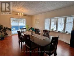 Set high above the iconic 1000 Islands Parkway, this home captures beautiful sunrise views over the St. Lawrence River. Mature trees around the property give you privacy without stealing the river scenery. The main level is bright and warm, with an open-concept kitchen, living, and dining area creating a natural gathering space, anchored by a cozy wood stove. Three well-sized bedrooms, two bathrooms, and the convenience of main floor laundry round out this level. Downstairs is where the flexibility really shows. You'll find additional living space, another room which could be a bedroom with a full bathroom attached, ample storage, and a massive workshop with overhead door access directly to the driveway. Whether you're into projects, need serious storage, or want space for hobbies that don't fit neatly in a spare closet, this level delivers. Outside, a wrap-around deck overlooks the river and surrounding trees, ideal for entertaining, morning coffee, or simply sitting still and remembering why you wanted to live here in the first place. The property also includes two detached garages: one located beside the house that has been spray-foam insulated, and a second at the end of the driveway, perfect for seasonal storage, recreational toys, or anything else you'd rather not keep in the house. The current owner enjoys river access via a leased dock, and the seller is willing to leave the dock for the next owner, who would simply need to re-apply for a new lease. A high vantage point, south-facing river views, generous indoor and outdoor space, and room for both work and play. This is a property that works just as hard as it relaxes. (id:47351)