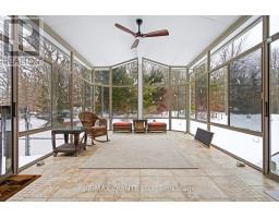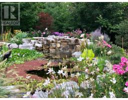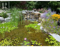 Nestled within the prestigious Ballantrae Woods community, this stunning 3,340 sq. ft. custom-built stone home with 4 bedrooms and 5 bathrooms, commands 1.356 private acres of breathtaking park-like grounds. Two beautifully landscaped ponds surrounded by exceptional perennial gardens, mature woodland, and extensive stone walkways and patios; all wrapped in elegant wrought iron fencing, create an outdoor sanctuary that must be seen to be believed. Professionally designed and meticulously maintained, the landscaping alone sets this property apart. Separate fenced areas for kids and pets, plus a well-built play structure, make this backyard as functional as it is breathtaking.Inside, you are welcomed with an elegant foyer, boasting 18' ceilings, marble floors and spectacular chandelier. A gracious upper gallery hall flows between the sleeping quarters, flanked by wrought iron railings that frame sweeping views of the soaring 18-foot ceilings in the foyer and family room below; a dramatic architectural statement that commands attention from the moment you enter the home and create an impressive sense of grandeur. The chef's kitchen features granite countertops, a centre island, chef's desk, pantry cupboards, and limestone floors, flowing seamlessly into a large 3-season sunroom with cathedral ceiling and two walkouts to the stone patios. A coffered ceiling in the grand dining room, main floor office, laundry, and direct access to the 3-car garage complete the main level.The primary bedroom offers a walk-in closet and spa-worthy 5-piece ensuite with jetted soaker tub, glass shower, and marble floors. The finished basement adds a 4-piece bath and an oak and marble fireplace.Key updates and extras include: a brand new roof, Generac whole-home generator, sprinkler system, central air, central vac, owned hot water tank, alarm system, paved driveway, large deck, and play structure. Great country feel - in town. This is Whitchurch-Stouffville living at its finest. (id:47351)