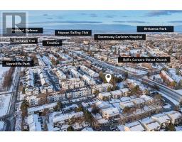 Located in the well-connected community in Bells Corner, this freshly painted, beautifully maintained UPPER Level END unit Terrace home offers over 1500 sqft super bright and airy living space. The Soaring Vaulted ceiling and Stunning 2 story windows flood the open concept Living and Dining area with tons of natural lights. Elegant hardwood flooring spans the Living/Dining area anchored by a cozy gas fireplace. The inviting eat-in kitchen features ample cabinetries, a generous center island, and newly updated, sleek and modern, white Quartz countertops, with a sliding door leading to SOUTH facing balcony- perfect for morning coffee or sunset views. One of the highlights upstairs is the versatile and capacious loft, which can be your home office, workout area, relaxation area, or Kids' playroom. Two bedrooms are well proportioned and spacious, and the primary retreat features large WIC, 4 pc cheater ensuite, and another private balcony. This home is ideally located, with quick access to HWY 416 and 417, minutes from shops, transits(including upcoming LRT phase 2), bike paths, Scenic NCC Greenbelt trails, and DND HQ. With the long list of recent updates, this home for sure provides you and your family peace of mind for years to come. Most recent updates include: freshly painted wall throughout (2025), Kitchen Quartz counter, sink, and faucet (2025), AC(2021), Furnace(2021), HWT(2021), refrigerator(2020), 2 faucets in bathrooms(2025) (id:47351)