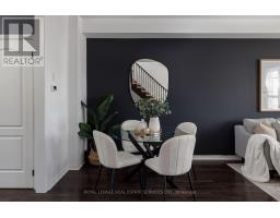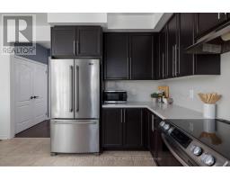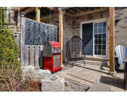 Impeccably upgraded and move-in ready, this stylish 3-bedroom townhome offers a refined blend of contemporary design and everyday comfort in the heart of Burlington's sought-after Alton Village. Perfectly suited for families, the home is just a short stroll to top-rated schools and close to shopping, restaurants, and highways. Expansive windows with California shutters bathe the interior in natural light, complementing high ceilings and modern pot lighting, creating an inviting, open, and spacious ambiance throughout. The thoughtfully designed layout features a walkout ground level leading to a private, fully fenced, low-maintenance backyard with a Zen-like feel and a large stone terrace-ideal for relaxing or entertaining. At the heart of the home, the beautifully refreshed eat-in kitchen (2021) showcases new quartz countertops, a contemporary backsplash, updated sink and stove, and a water line for the fridge, and a breakfast area with direct access to a newly upgraded balcony (2024) finished with composite decking and aluminum railings. The generous living and dining room features hardwood flooring, numerous pot lights, a feature wall, and a linear fireplace, perfect for entertaining in style. Quality upgrades and enhancements include an electric fireplace in the family room, and professional landscaping front and back (2024), professionally painted and updated lighting and door hardware throughout (2022), luxury vinyl plank flooring on the ground level, and renovated main bathroom (2021), and hardwood added upstairs. A true turnkey opportunity offering style, function, and an exceptional lifestyle. Fabulous home! (id:47351)