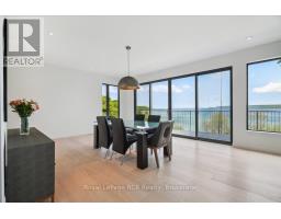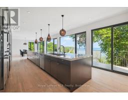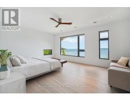 Perched majestically above the crystalline shores of Colpoy's Bay, this architectural masterpiece defines the pinnacle of modern luxury. A true masterclass in light and form, the estate is wrapped in soaring floor-to-ceiling glass, erasing the boundary between its sophisticated interiors and the shimmering expanse of the bay. While the residence is thoughtfully nestled on the hillside to maximize its commanding panoramic views, the lifestyle extends directly to the water's edge, a gentle stroll across the coastal road leads you to your own private dock for seamless days spent on the waves. The heart of the home is a chef's sanctuary, anchored by a monumental 21-foot island and outfitted with a full suite of professional Miele appliances, a built-in espresso station, and a curated wine fridge. This culinary hub flows effortlessly into a grand dining area and a living room defined by soaring ceilings and a bespoke wood-burning fireplace, creating an atmosphere of refined warmth. Each of the six meticulously designed bedrooms is oriented to capture the morning light dancing off the water, including a primary suite that serves as a sanctuary of wellness with its spa-inspired ensuite and expansive walk-in dressing room. For those seeking versatility, the walk-out lower level offers a sophisticated footprint for an in-law suite or high-end guest accommodations with significant income potential. Outside, the 0.7-acre grounds are a botanical retreat of lush gardens, mature canopy, and multiple terraces designed for grand-scale entertaining. Whether you are hosting an alfresco gala, unwinding in the water view hot tub, or wandering down to the water to launch a kayak, the amenities are unparalleled. Complete with a three-car detached garage and RV hook-ups, this estate is a legacy retreat located just minutes from the charm of Wiarton and an easy 40-minute drive to the rugged wonders of Bruce Peninsula National Park. (id:47351)