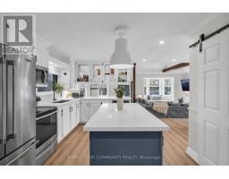 Just steps from Lake Simcoe with exclusive residents only lake access, this well maintained home features a bright updated kitchen with quartz countertops, new flooring throughout the main floor, fresh paint, and plenty of natural light. The sunken living room is full of character with cathedral ceilings, wooden beams, a cozy bow window nook, and a beautiful new fireplace feature. The spacious primary suite offers a private ensuite and walkout to a balcony perfect for peaceful mornings. Sliding doors off the dining room lead to a fully fenced, beautifully landscaped backyard with a spacious driveway that leads right to the back, a shed for extra storage and a large detached garage with heat & hydro. Located in a sought after lakeside community, this home is perfect for relaxed living near the water. (id:47351)
