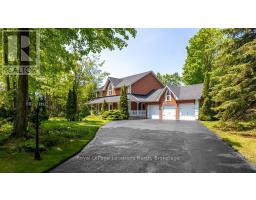 Welcome to your own private retreat on 2.81 beautifully landscaped acres in the prestigious Simcoe Estates of Oro-Medonte. Nestled against a tranquil forest backdrop, this immaculate executive home offers 4+1 bedrooms and a professionally finished walkout basement-perfect for extended family or in-law living.Pride of ownership shines throughout. The property features award-winning landscaping, mature trees, and vibrant gardens that create a truly breathtaking setting. Tucked away on a quiet private court in one of the area's most desirable neighbourhoods, this home offers exceptional privacy and a peaceful, natural environment.Car enthusiasts and hobbyists will love the oversized 3-car garage, spanning more than 800 sq. ft. and accommodating up to four vehicles with ease. The expansive paved driveway provides plenty of additional parking for guests. Recent exterior upgrades-including newer Timberline high-definition shingles, eavestroughs with leaf guards, and enhanced exterior lighting-add both beauty and long-term confidence.Inside, the home is finished with quality in mind. A grand traditional Oak staircase, granite countertops, upgraded baseboards, and vintage oak hardwood flooring elevate the living spaces. Major mechanical updates-such as a two-stage high-efficiency furnace, ultraviolet water filtration, two new holding tanks, and fibre-optic internet-ensure modern comfort and reliability.The charming covered wraparound porch is a standout feature, offering a warm welcome and the perfect spot to unwind while enjoying the lush gardens and surrounding nature.Ideally located close to skiing, golfing, fishing, shopping, restaurants, Royal Victoria Hospital, and the amenities of Barrie, this property blends luxury living with everyday convenience.A quick closing is available-your dream lifestyle is ready when you are. (id:47351)