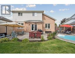 Beautiful 1944 Square foot, 3+1 bedroom 4 bathroom home, with approximately 3000 Square feet of finished living space. Extra large lot complete with stunningly designed landscaping. Home features 15 foot vaulted ceilings in the living room with floor to ceiling natural stone gas fireplace and hardwood floors. Off of the living room you will step into the updated eat in kitchen with granite countertops and two custom cabinets. The kitchen leads you to the private rear yard with mature trees, in-ground swimming pool and stamped concrete patio. Second floor offers large master suite with walk-in closet and ensuite bath, and 2 good sized bedrooms. Fully finished basement adds plenty of additional space with family room, full bathroom, 4th bedroom, and utility/storage space. Quiet family friendly neighbourhood. Double car garage and stamped concrete driveway add that extra bonus! Close to parks, schools, community centre, river, and shopping. (id:47351)