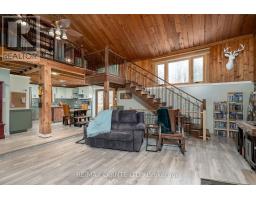 Welcome to 20 Thompson Road. Beautiful custom-built log bungaloft situated on a peaceful 2+ acre country setting. Step inside from the inviting front porch to discover the unique character and charm with an open concept kitchen/dining/living room layout with cathedral ceiling and floor-to-ceiling stone with woodstove. Kitchen area with plenty of cabinetry and butcher block island, dining area with walkout to new deck overlooking the lovely backyard. Livingroom with large windows for lots of natural light and walkout to covered porch. Spacious newer 4-piece bath with laundry finishes the main level. Step up into the loft area where you'll find the generous primary bedroom with lots of closet space. Full partially finished basement with potential for a rec room and an additional bedroom (roughed in) or maybe an in-law suite. Outside you'll find a beautifully maintained yard with 2 large sheds and a garden shed. Lots of updates including new furnace(2026), doors(2019), windows(2019), roof(2012), decks(2025), bathroom, kitchen, stairs & railing, water system etc. Great location close to all amenities. This charming home could be your new home! (id:47351)