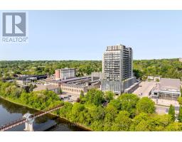 Luxury Penthouse Living in the Heart of the Gaslight District! An extraordinary 2,300 sq. ft. residence created by seamlessly combining two expansive units. Spanning the entire side of the building, this one-of-a-kind three-bedroom, three-bathroom home offers breathtaking panoramic views of historic downtown Cambridge and the Grand River. Step into a grand foyer that opens into a sun-drenched, open-concept living space. Floor-to-ceiling windows bathe the home in natural light, while engineered hardwood floors add warmth and sophistication. The thoughtful layout includes pocket doors in every bedroom, maximizing both space and functionality. At the heart of the home is a chefs dream kitchen, fully upgraded with quartz countertops and backsplash, an oversized island, and premium finishes. Designed for both style and efficiency, this space is perfect for intimate dinners or lavish gatherings. The primary suite is a private retreat, complete with a spacious walk-in closet/dressing area with custom organizers and a large window. The spa-like ensuite boasts a walk-in glass shower and dual sinks, while sliding glass doors provide direct access to the penthouses expansive 100-ft. terrace. The second bedroom features floor-to-ceiling windows, a wall-to-wall closet, and its own private three-piece ensuite. A third generous bedroom currently configured as an office/den offers additional flexibility. This extraordinary residence also features a wraparound balcony accessible from every room, offering spectacular sunrise and sunset views over the city skyline and Grand River. Additional features include two underground parking spaces (one with an EV charging station), two private storage lockers, and access to state-of-the-art amenities: a rooftop terrace, private dining room, fitness center, yoga & Pilates studio, and an elegant lobby. (id:47351)
