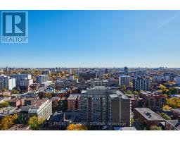 $601 MonthlyLuxurious 1-bedroom + den CORNER unit, spanning 805 sq. ft.-one of the largest 1 bed. floor plans in its collection. This sophisticated residence offers an open-concept layout with floor-to-ceiling windows that provide million-dollar, unobstructed downtown views from the 20th floor. The custom kitchen is equipped with granite countertops, a beautiful new backsplash, and elegant white cabinetry. Sliding doors open to a private balcony, perfect for enjoying the city scape. The versatile office/den area is conveniently located to the right of the kitchen. The large primary bedroom boasts a corner window and a dedicated study area. Additional features include in-suite laundry (2024), custom roller blinds (2025), hardwood floors, and updated light fixtures throughout the unit. A parking space and storage locker are also included. Residents will enjoy an array of amenities, including a 24-hour concierge/security service, a guest suite, a terrace, an outdoor patio with BBQs, an indoor pool, a gym, and a conference room. For ultimate convenience, Farm Boy is located on the ground level, with amazing restaurants and an LCBO just steps away. The building offers quick access to Parliament Hill, Rideau Centre, the University of Ottawa, and the Financial District. (id:47351)