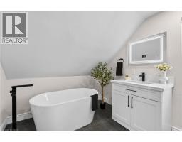 Welcome to 201 Grosvenor Avenue, where modern design meets community charm in one of Hamilton's coolest neighbourhoods-Crown Point. This beautifully updated 2+1 bedroom, 2 bathroom home is the perfect blend of style, comfort, and functionality, ready to create years of great memories.Step inside and you're immediately greeted by soaring ceilings and a bright, cozy living space featuring a statement feature wall and electric fireplace, all anchored by an oversized window that looks out onto your private deck-ideal for both relaxing evenings and lively gatherings.The open-concept designer kitchen flows seamlessly from the living area, making it perfect for entertaining and everyday family life. Finished with stainless steel appliances, modern cabinetry, and plenty of prep space, this kitchen truly sits at the heart of the home. The main level also offers a versatile bedroom-ideal as a home office or guest room-along with oversized laminate flooring and a full bathroom complete with a glass-enclosed standing shower.Upstairs, retreat to your private primary suite, featuring an oversized bedroom, a custom built-in his-and-hers closet, and a spa-inspired ensuite with a four-piece bath, standing shower, tub, and a window overlooking the backyard.Outside, the home continues to impress with an oversized poured concrete patio and a generous backyard designed for entertaining. Enjoy the built-in bar setup, TV inserts, and a shed for extra storage-perfect for hosting friends, family, and game nights.Additional highlights include two parking spaces and a prime location just minutes from Ottawa Street, known for its vibrant shops, cafés, and community atmosphere.This is modern Crown Point living at its best-move in, unpack, and enjoy. (id:47351)