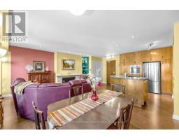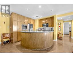 Nestled in a boutique condominium building surrounded by stately homes and mature greenery, this charming suite offers approximately 989 sq. ft. of thoughtfully designed living space in one of Toronto's most coveted neighbourhoods. A welcoming foyer entry opens to an expansive living and dining room, beautifully anchored by a rare wood-burning fireplace-the perfect setting to unwind. A wall of windows with four Juliette balconies brings in abundant natural light while inviting fresh air and leafy neighbourhood views.The open-concept kitchen features a distinctive curved island with breakfast bar seating, creating an ideal space for casual dining and entertaining while remaining connected to the principal living area. Beyond the main living space, the suite offers the luxury of separate living zones, including a comfortable family room and a bright sunroom that provides a wonderful extension of the bedroom-perfect for a reading area, home office, or quiet retreat. Additional conveniences include ensuite laundry, one underground parking space and out-of-suite locker. Residents enjoy outdoor living on the rooftop terrace, perfect for entertaining, summer barbecues, and nurturing a small garden. The location is exceptional-steps to parks, scenic trails, the ravine system, and the Evergreen Brick Works, with Castle Frank TTC station within walking distance and the shops and restaurants of Yorkville just a short stroll away.A rare opportunity to enjoy peaceful, character-filled living in a beautifully situated pet-friendly building. (id:47351)