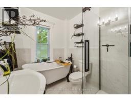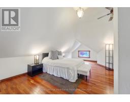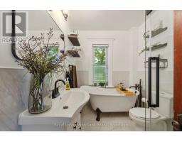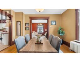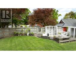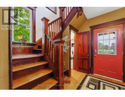 CURB APPEAL & A DOUBLE LOT! This stately red-brick residence is ideally situated on a spacious corner double lot, offering timeless charm and standout curb appeal. A true landmark in the neighborhood, this classic 2.5-storey home is instantly recognizable as you drive down Queen Street, thanks to its eye-catching exterior and inviting presence. Step onto the grand covered front porch - perfect for enjoying your morning coffee or unwinding in the evening - and you'll instantly feel at home. Inside, the main level features a generously sized kitchen and a formal dining room complete with a cozy gas fireplace and a stunning stained-glass window. The space flows seamlessly into a bright, welcoming living room, ideal for gatherings and everyday living. A convenient two-piece bathroom rounds out the main floor. Up the original, character-filled staircase, you'll find three spacious bedrooms, including a primary retreat with its own charming Juliet balcony. The newly renovated four-piece bathroom combines modern comfort with the homes historic elegance. The fully finished attic offers a versatile bonus area, perfect as a fourth bedroom, family room, or home office. Outside, the fully fenced backyard and private patio provide an ideal setting for entertaining or family life. The expansive double lot presents rare potential for future severance and added value, while the beautifully landscaped grounds further enhance the homes standout appeal. This is more than just a home, its a rare opportunity to own a piece of timeless architecture with the flexibility and space to suit todays lifestyle. (id:47351)