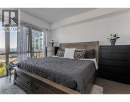 Experience peak urban living in this rare, contemporary corner suite in the prestigious Berkeley Condos, perfectly positioned in the heart of downtown. Steps from Burlington’s vibrant waterfront, premier dining, boutique shopping, cultural events, and everyday conveniences, this residence offers the ultimate lifestyle experience for those who value luxury and location. This spectacular South-East facing suite boasts a stunning open-concept design highlighted by floor-to-ceiling, wall-to-wall windows, soaring 9’ ceilings, and direct lake and escarpment views. Hardwood floors flow throughout the expansive living and dining areas, seamlessly extending to a remarkable 200 sq ft wraparound balcony—ideal for morning coffee, evening cocktails, or simply soaking in the panoramic vistas. The chef-inspired kitchen is an entertainer’s dream, featuring an 8’ quartz island with breakfast bar, sleek built-in stainless steel appliances, tile backsplash, range hood, and a dedicated coffee bar. The serene primary retreat offers a walk-in closet and spa-like 4pc ensuite with oversized vanity, luxurious soaker tub, and glass walk-in shower. An additional spacious bedroom and modern 3pc bathroom provide versatility for guests or a private office. In-suite laundry, two parking spaces, and two storage lockers—including one super locker—add exceptional convenience. The Berkeley lifestyle is second to none, offering 24-hour concierge, a fully equipped fitness centre, two guest suites, party and games room, and an impressive rooftop terrace with breathtaking views. A true must-see—this is downtown luxury living at its finest. (id:47351)
