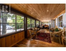Welcome to Oakview Lodge, a rare waterfront estate on the shores of Little Hawk Lake in the heart of Algonquin Highlands. Thoughtfully updated while retaining its historic charm, this exceptional property offers a unique opportunity to create a private family compound, legacy retreat, or luxury cottage destination - with the added benefit of income potential. The main lodge offers over 8,500 square feet across 4 levels, blending classic lodge character with modern comfort. A wrap-around veranda welcomes you with sweeping lake views, while inside, the main level features expansive sitting, dining, & living areas anchored by a striking stone fireplace. A spacious chef's kitchen designed for large gatherings includes a walk-in pantry/laundry & opens to a screened BBQ porch, seamlessly connecting to a landscaped & private backyard with a central fire pit. The second floor features 6 updated bedroom suites, each with its own ensuite, providing comfortable accommodations for family & guests, along with access to a shared deck overlooking the lake. The third floor is dedicated to a fully self-contained 3-bedroom owner's retreat, showcasing exceptional craftsmanship, an open-concept kitchen & living area, in-suite laundry, a private balcony, & stunning lake views. The property also includes a charming 2-bedroom year-round guest cottage & an oversized 2-car garage with a loft currently used as a seasonal art studio, offering excellent flexibility for guests or creative use. Set on the pristine shoreline of Little Hawk Lake, Oakview Lodge includes established dockage & marina facilities, providing effortless access to the water & a opportunity for supplemental income. Surrounded by natural beauty and close to excellent hiking trails, this remarkable property offers privacy, recreation, & refined lakeside living. Whether envisioned as a multi-generational estate, private retreat, or legacy property, Oakview Lodge is truly one-of-a-kind. (id:47351)