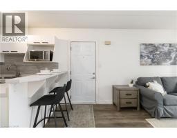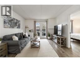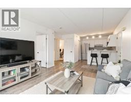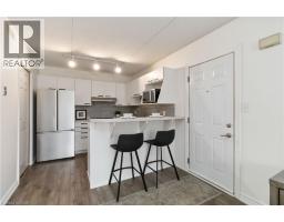 Welcome home to this beautifully appointed open-concept 1 bedroom plus den condo, privately nestled in the sought-after Headon Forest community of Burlington. Surrounded by mature trees and tranquil greenery, this bright and inviting one-bedroom plus den residence offers an exceptional blend of style, comfort, and convenience. Designed with modern living in mind, the spacious open-concept layout creates seamless flow between the kitchen, dining, and living areas ideal for both everyday living and entertaining. The peninsula-style kitchen serves as the heart of the home, offering generous counter space, additional seating, and a natural gathering place for casual meals or hosting guests. The sun-filled living area extends to a private covered balcony, providing a peaceful outdoor retreat to enjoy your morning coffee or unwind at the end of the day. The well-proportioned primary bedroom is complemented by a versatile den, perfect for a home office, guest space, or reading nook. A four-piece bath and convenient in-suite laundry enhance everyday functionality. Ideally located close to shopping, restaurants, parks, and everyday amenities, this residence offers refined condo living in one of Burlington’s most desirable neighbourhoods. (id:47351)