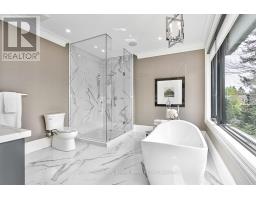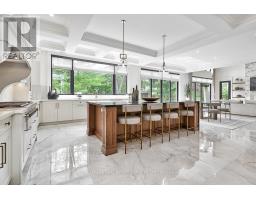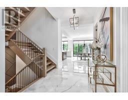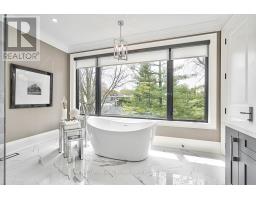 CUSTOM EXECUTIVE MASTERPIECE IN PRESTIGIOUS SOUTH-EAST OAKVILLE! Presenting 204 Maple Grove Drive, an almost new luxury residence by OBG Design Group with architectural design by Lima Architects Inc., set on an exceptional 115' x 138' mature, treed lot just north of Lakeshore Road. Offering over 6,000 square feet of finished living space, this home was impeccably crafted for refined everyday living and grand scale entertaining. A circular driveway with parking for up to 12 vehicles creates a commanding first impression, complemented by a rare three-car garage featuring heated floors and sleek glass doors. Inside, 10' ceilings, expansive windows, and abundant natural light highlight the home's elevated finishes, including coffered ceilings, electric window blinds, and dramatic staircase accent lighting. The transitional modern layout offers 4+1 bedrooms, 7 spa-inspired bathrooms with heated floors, and five fireplaces. The spectacular chef's kitchen anchors the main level, showcasing quartz countertops, an oversized centre island, and commercial-grade Wi-Fi enabled Thermador appliances. The adjoining living room stuns with a 20' ceiling, gas fireplace, and seamless walkout to the backyard. The lower level is a true retreat, complete with radiant heated floors, a theatre room with 180" projection screen, full bar, games area, gym, nanny suite, and a glass-enclosed wine cellar. Outdoors, enjoy a 400 square foot covered living area with gas fireplace, ideal for year-round enjoyment. Additional highlights include a whole-home audio system with 8 speakers, central security with 8 cameras, upgraded central vacuum, 7-zone inground sprinkler system, rough-in for Tesla charger, and rough-in for security gates. Ideally located near the lake, top-rated schools, major highways, and every essentials, this exceptional residence delivers a rare combination of luxury, functionality, and timeless design - the ultimate South-East Oakville lifestyle. (some images have virtual staging) (id:47351)