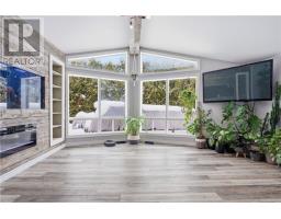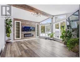 Where modern design meets total comfort in a home that truly stands out. This 3+1-bedroom, 2-bathroom beauty has been fully transformed with a vibe that’s equal parts designer-chic and perfectly cozy. You’ll love the bright, open-concept main floor featuring soaring vaulted ceilings, rustic wood beams, and massive windows that flood the space with natural light. The kitchen is a total dream with crisp white cabinetry, elegant quartz counters, a deep farmhouse sink, and a built-in dishwasher. Plus, the oversized pantry offers incredible floor-to-ceiling storage for the ultimate coffee bar or snack station. The living room is a showstopper, anchored by a floor-to-ceiling reclaimed wood accent wall with a built-in aquarium and a sleek electric fireplace. Head downstairs to the fully finished lower level, featuring a spectacular stone accent wall and a second fireplace, the perfect spot for a home gym, movie room, or a quiet office retreat. Outside, enjoy a private, tree-lined view that feels like a getaway right in the middle of everything. With a stylish, bright laundry room and modern finishes throughout, this one is move-in ready and waiting for you. (id:47351)