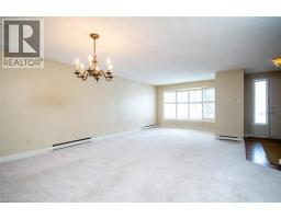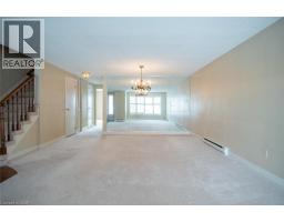 Enjoy peaceful golf course views with no rear neighbours in this spacious 1,583+ sq. ft. townhouse backing directly onto the Tyandaga Golf Course — one of the larger layouts in the complex. Nestled in a quiet enclave in the highly desirable Tyandaga neighbourhood, this home offers exceptional privacy, open views, and incredible potential. The generously sized living and dining rooms are filled with natural light from a large front window, creating an inviting space for everyday living and entertaining. At the back of the home, the kitchen opens to a warm and cozy family room complete with a wood-burning fireplace — an ideal place to relax. From here, step out to the fully fenced patio backing directly onto the Tyandaga Golf Course, offering serene views and no homes behind you. A convenient 2-piece bathroom completes the main level. Upstairs, you’ll find three well-sized bedrooms, including a large primary bedroom with two closets and a 3-piece ensuite. A 4-piece main bathroom completes the upper level. The unfinished basement offers excellent potential for future customization and includes a laundry area and direct access to the underground garage. This unit includes two dedicated parking spaces: one underground and one surface spot conveniently located at the front of the complex. Wellington Green residents enjoy access to a private recreation centre featuring a pool, sauna, hot tub, and community outdoor patio — amenities you can enjoy year-round. Ideally located near golf, tennis courts, shopping, schools, parks, public transit, and major highways, this home is perfect for commuters. Maintained in its original condition and ready for your vision, this home offers an exceptional opportunity to customize and create something truly special in one of Burlington’s most sought-after neighbourhoods. (id:47351)