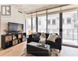 Fully furnished. Welcome to sophisticated city living in this spacious, modern loft-style condo. Thoughtfully designed with an open-concept layout, exposed concrete ceilings, and floor-to-ceiling windows, this residence offers an airy, light-filled atmosphere. The sleek kitchen complete with stainless steel appliances is perfect for all your culinary adventures. The private bedroom provides a tranquil retreat. A stylish 4-piece bathroom and an expansive balcony, ideal for outdoor dining or unwinding with a good book, complete the space. Located in one of Toronto's most sought-after neighborhoods, you'll enjoy immediate access to top-tier dining, shopping, entertainment, and cultural destinations. With the King streetcar, renowned restaurants, cafes, art galleries, and theatres all just steps away, convenience and luxury go hand in hand. The boutique building offers a fully-equipped gym, and a serene inner courtyard a rare green oasis in the heart of the city. (id:47351)