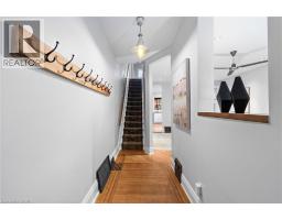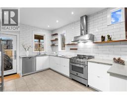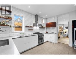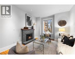 Coveted Kirkendall neighbourhood, solid brick 19th Century Victorian home with absolutely stunning renovations while maintaining its charm and character. Main floor features a bright, open-concept living and dining area with original hardwood floors, soaring ceilings, pot lights, and a fireplace. The impressive modern kitchen showcases a sleek contemporary design with Caesarstone quartz countertops, white lower cabinetry paired with custom black walnut upper cabinets and shelving, a Bertazzoni professional gas range, Fisher & Paykel refrigerator, and Miele dishwasher. A full-height subway tile backsplash, porcelain floor tile, pantry cabinetry, pot lights, abundant natural light, and walk-out to a raised deck and backyard complete this exceptional space. Upstairs offers three well-appointed bedrooms plus a versatile home office nook or walk-in closet, all featuring original hardwood floors, large windows, and a thoughtful mix of original and replica baseboards and trim. The beautifully updated full bathroom is both spacious and elegant, with a soaker tub, marble vanity, pot lights, and plenty of natural light. Enjoy outdoor living with a raised deck and covered porch off the kitchen overlooking a fully fenced backyard offering excellent privacy. Parking for two cars is available and easily accessible. Numerous updates include electrical wiring, insulation, select windows, fencing, kitchen, and bathroom—making this a truly turnkey home in a prime location. Steps from Locke St, enjoy the best of dining delights and truly the best part of the city. A five minute walk from Earl Kitchener Elementary School, all amenities, public transit and parks makes this location second to none. (id:47351)