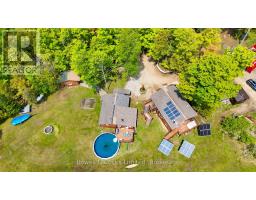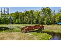 Welcome to your private 20-acre rural retreat where nature, comfort, and self-sufficiency harmoniously meet. This one-of-a-kind, OFF-GRID oasis is powered by solar energy and offers everything you need for a peaceful, sustainable lifestyle. The main house features a bright and airy open concept layout with two spacious bedrooms and a luxurious 4-piece bath, complete with a glass shower and a separate soaker tub. The light filled dining area flows seamlessly into the large kitchen, perfect for home-cooked meals and entertaining. Cozy up in the inviting living room with a wood stove, and enjoy added convenience with a well-equipped mudroom that includes a washer and dryer. An oversized two-car garage includes a full upper-level living space with two additional bedrooms, a 2-piece bath, wet bar, wood stove, and a generous rec room with pool table ideal for guests or extended family. The property also features a heated Bunkie, perfect as a studio, guest space, or creative escape. Outdoor amenities include an above-ground pool, a tranquil pond with a charming footbridge, and a bonus sugar shack ready for maple syrup production from your own trees. Surrounded by mature forest, this hobbyists paradise is perfect for beekeeping, gardening, and embracing the rhythms of rural living. Whether you're seeking a serene family getaway, a homesteading haven, or a retreat for recreation and relaxation, this property is the ultimate escape. (id:47351)