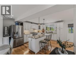 Gorgeous and spacious 2-storey home set on a large, beautifully treed raised private lot, offering 5 bedrooms, 5 bathrooms, and an impressive layout ideal for families or multi-generational living. The main floor features a stunning kitchen with granite countertops, high-end Viking gas stove, stylish backsplash, large island, and plenty of cupboard and prep space, along with a bright dining area perfect for entertaining. Walk out to the 18' x 23' covered patio complete with an outdoor kitchen and gas line for the BBQ, perfect for hosting and outdoor living. The inviting living area flows into a sunroom with a cozy gas fireplace overlooking the private backyard. The second floor offers generous bedrooms, including a spacious primary bedroom with a walk-in closet and private ensuite, plus a potential in-law setup with 1 bedroom, bathroom, laundry room, and kitchenette. The basement adds additional living space with a 2-piece bath, rec room/exercise room, theatre room, and walk-up access to the garage. Enjoy the private backyard oasis with hot tub, landscaping, mature trees, and a front and back yard irrigation sprinkler system. Recent updates include new CertainTeed Landmark Pro lifetime fibreglass shingles (2019), blown-in attic insulation (2020), electrical updates throughout, new triple and double-pane windows to 3 dormers (2024), new siding and soffits to dormers (2024), and driveway sealant (2025). Complete with a 2-car attached garage with multiple entries into the home, located close to schools, churches, shopping, amenities, breweries, vineyards, and just a short drive to Port Dover Beach. (id:47351)
