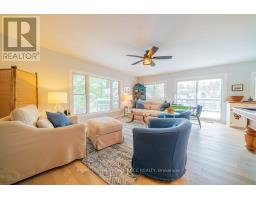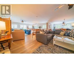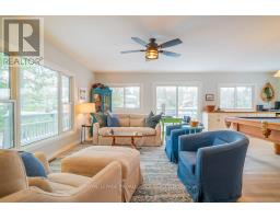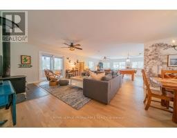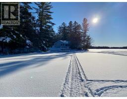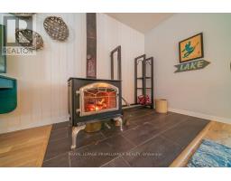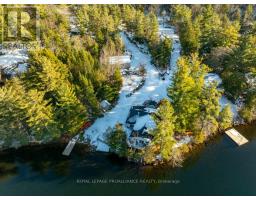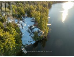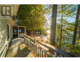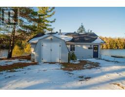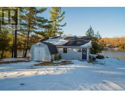 Embrace the beauty of every season at this exceptional four-season recreational retreat on Grindstone Lake. Set on a private 1.2-acre lot with an impressive 245 feet of pristine shoreline, this turnkey waterfront residence offers the perfect balance of comfort, nature, and effortless enjoyment.The beautifully renovated and fully furnished 1,700 sq. ft. open-concept home is designed for connection and relaxation. A spacious wrap-around deck captures sweeping lake views-ideal for morning coffee, sunset dinners, and memorable gatherings with family and friends. Inside, warm hardwood floors flow throughout, complemented by an inviting kitchen, dining area, cozy lakeside nooks, and a dedicated games space that make the home feel both functional and welcoming.The layout features two generous bedrooms, including a primary suite with a private en-suite, + 2nd stylish guest bathroom. Extensive upgrades completed in 2020 include updated kitchen and bathrooms, new windows and sliding doors, a propane furnace, and spray-foam insulation throughout the 1,500 sq. ft. crawlspace/utility room-ensuring year-round comfort and efficiency. The roof was replaced in 2016, and the fully insulated, heated detached garage with loft adds valuable storage and flexible space.Step outside to enjoy excellent swimming along a sandy-bottom shoreline, your own private boat launch, and endless recreational trails access. Whether you dream of casting a line for bass or trout, exploring crystal-clear waters by boat, or simply savoring peaceful days in the heart of cottage country, this turnkey sanctuary is ready for your next chapter-no renovations required. With year-round road access and thoughtful updates throughout, every detail has been designed to ensure effortless enjoyment and lasting memories. A serene retreat surrounded by nature's tranquility, this property is your canvas for unforgettable moments all year round. Step into a life where every season inspires!Your lake side adventure awaits. (id:47351)