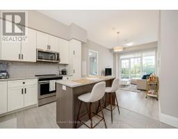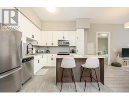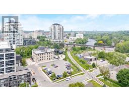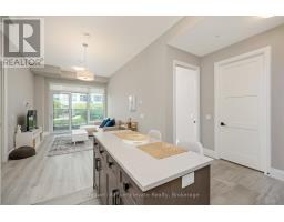 Stunning 2 bdrm & 2 bth, 1040sf condo w a massive balcony adding 195sf of outdoor pleasure. Located on the Mezzanine level (2nd floor) this unit has expansive views of the thoughtfully designed Metalworks-Copper Club ext common space. BBQ stations, outdoor lounge & dining areas, artificial grass games area for Bocce or other games & an outdoor gas fire pit, complete w Adirondack chairs! The expansive foyer graciously welcomes you into this breathtaking unit! A rarely offered super functional layout with soaring 9.5-10.5 foot ceilings, oversized int doors, custom blinds, upgd cabinetry, upgd fixtures, upgd baseboard and trim work, quartz countertops, textured oversized subway tile bksplsh, 12"X24"flr tiles& luxury vinyl laminate floors. Int was professionally designed to elevate your living experience! The Primary bedroom has both a generous sized walk-in & dbl closet which leads to the spa-inspired 3 pc ensuite. A sliding door leads you from the Primary to the apprx 30' long balcony where you can enjoy 3 season entertaining. The balcony is surrounded by shrubbery & plantings to provide you with ultimate privacy. The 2nd bdrm (orden) on the opposite side of the condo affords you or your guests privacy & is adjacent to the main 4 pc bath. This bdrm/den has an oversized window, custom blinds & dbl closet. The Copper Club has exec townhouse units that face the Speed River & this unit abuts these high-end, multileveled towns offering a view to the river, the downtown core and a more peaceful location within the complex! This unit has an owned parking space & an owned storage locker. There is bldg bike storage in the garage level. The amenities in the Metalworks Copper Club are second to none...Library, Games Area, the Speakeasy concealed beyond an unmarked door, WIFI Lounge, Fireside Lounge, Dog Wash, Guest Suite! All of this & only a short walk to parks, restaurants, downtown Guelph the Sleeman's Centre & more. A standout residence not to be missed! (id:47351)