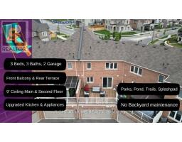 Over 2400 sqft, NO Yard Maintenance Townhome with 3 Beds/ 3 Bath & 2 Balconies - front & back!!! Main floor has one bedroom suite with bath and kitchenette. The whole house is filled with natural light, stylish finishes, and plenty of space to meet all your needs. From the moment you step inside, you'll notice all the upgrades that give it a fresh, contemporary vibe. The modern kitchen is a dream, with a central island perfect for whipping up your favorite meals or gathering with friends. You've got sleek stainless steel appliances and easy access to a private terrace ideal for entertaining. The 9-foot ceilings on the first and second floors make everything feel open and spacious. Living & Dining has been upgraded with pot lights and modern lighting Next to 16 Mile Creek tails, ponds, Parks, Splash pads, New Schools (id:47351)