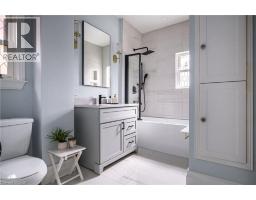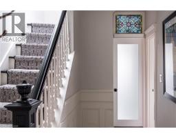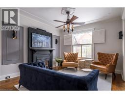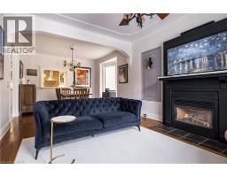 Stunning century home in the heart of the Durand neighbourhood. This fabulous family home on a quiet side street has been meticulously renovated from top to bottom inside and out!! Exceptional curb appeal with interlock driveway, walkways, porch and awnings invite you to knock on the customized front door. Inside you are greeted by a spacious hallway that lead to a stunning living room with custom panelled feature wall showcasing the gas fireplace, flanked by chic sconces, a nod to blending modern design with timeless character. Hardwood floors, dentil molding and original arch with cornice moldings connect the living room to an elegant dining room perfect for entertaining family and friends. The gourmet kitchen features granite countertops, stainless steel appliances, mosaic backsplash, abundant storage and passthrough to the dining room so you are always part of the conversation, plus a sweet powder room off to the side. Step out the kitchen door to the spacious 17x13ft covered back porch and enjoy extra outdoor living space overlooking a lovely landscaped yard with perennial gardens and ambient lighting. Upstairs features three spacious bedrooms with custom millwork, California shutters, new flooring and a chic 4-pc spa-like bath with stained glass transom. A bright spacious attic with vaulted ceilings, skylights, gleaming wood floors and 3-piece bath, offers great space as a family room, home gym, or primary suite. The waterproofed basement provides ample storage and a unique soundproof music room/den/mancave with copper ceiling tiles. Major updates include, roof, driveway, walkways, porch, deck, lighting, kitchen, bathrooms, flooring, trim, see detailed list is attached in the supplements. Located just minutes from Locke St S. restaurants, coffee shops, boutiques, schools, parks, trails, golf, St. Joseph’s or McMaster Hospital and Hwy 403, make this a fabulous location and family home just waiting for its next owners to move in and enjoy. RSA (id:47351)