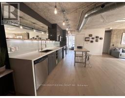 **1 YEAR FREE MAINTENANCE** Little Italy. 1885 History. Rare. College St. Known across the city and beyond where street cool and lifestyle meet.Units like this rarely come to market with the finishes and detail held here. Envision your bedroom in the modern Church Tower, one window facing College St(South) the other Bathurst St(East) with a CN tower view. Formerly a large 1+1(845 sq ft as per MPAC) converted to a 2 bedroom. Long, modern linear high gloss kitchen with Caesar stone counter and Island that seats 6, glass backsplash, 9" plank eng flooring with natural finish, exposed concrete ceilings, select exposed concrete walls sealed for lustre, entire unit is re-done, nothing left untouched. Hard loft finishes with warm accents, truly a special space. Step into the stand alone resin soaker tub or the stand alone shower with 16"X16" rain head + hand held with 2 built in 5"x5" speakers for an acoustic shower experience then step out onto the heated bathroom floor. Space, light and tasteful design fill the space. 7th floor Gym, Sauna and enormous rooftop terrace with unparalleled City views.. Unit has parking and locker, full circle conveniences. Michelin Star neighbour at corner plus an entire strip of culinary options. (id:47351)