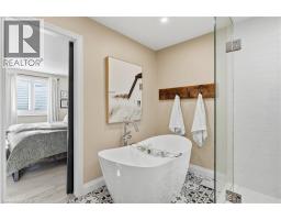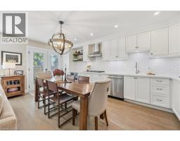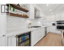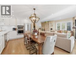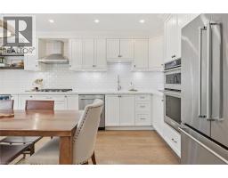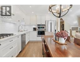 Welcome to this beautifully updated End-Unit townhome in sought-after Headon Forest. Perfect for the busy professional or those looking to downsize. This home combines timeless style, modern upgrades, and maintenance-free living just minutes from parks, shops, restaurants, and major commuter routes. Step inside to discover a fully renovated kitchen with an elegant extension featuring granite counters, gas cooktop, built-in oven/microwave combo, range hood, bar fridge, and under-cabinet lighting designed for entertaining and everyday ease. The open-concept main floor offers refinished hardwood floors, modern pot lighting, California shutters, and an inviting dining and living area that opens to a private, extended patio with upgraded stonework and a natural gas line for outdoor cooking. Upstairs, you’ll find three spacious bedrooms with new hardwood throughout, a spa-inspired main bath with stand-alone soaker tub, and a renovated two-piece powder room on the main level. Attention to every detail, updated interior doors and hardware, upgraded ceramic tile, a custom stair runner, all new exterior windows, doors, eaves and downspouts, plus patio doors with glass-enclosed blinds. Enjoy the convenience of two-car parking in the driveway, ample visitor parking nearby, and the peace of mind that comes with a maintenance-free exterior. This exceptional property delivers style, substance, and a prime Burlington location move right in and start living! (id:47351)