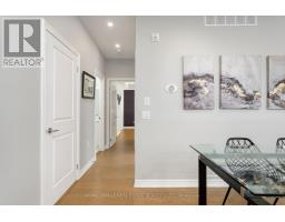 Welcome to Westmount, one of Oakville's most sought-after communities, prized for its expansive parks, scenic trails, and placement within the highly desirable Garth Webb Secondary School catchment. This family-friendly neighbourhood offers exceptional convenience with the hospital just three minutes away, everyday shopping, restaurants, and services nearby, and outstanding commuter access-only four minutes to the 407ETR, six minutes to the QEW/403, and nine minutes to the Bronte GO Station, ensuring effortless travel throughout the GTA. This bright and stylish corner-unit stacked townhome features 2 bedrooms, 2 bathrooms, and approximately 993 sq. ft. of modern living space, plus an impressive 213 sq. ft. (approx.) covered balcony ideal for outdoor dining and relaxation. Thoughtful upgrades include deluxe kitchen cabinetry with upgraded hardware and backsplash, 9-foot smooth ceilings, oversized windows with California shutters, and upgraded LED pot lighting w/dimmers. Recent improvements add peace of mind,including a new dryer and dishwasher (2025), new laminate flooring (2024), and a full professional repaint (2022). The open-concept layout is filled with natural light and offers a well-appointed kitchen with granite countertops, peninsula/island with breakfast bar, and stainless steel appliances, seamlessly connecting to the living and dining areas with a walkout to the covered terrace. The spacious primary suite features a tray ceiling, a walk-in closet, and a 3-piece ensuite, while the second bedroom enjoys easy access to a 4-piece main bathroom with a tub/shower combination. In-suite laundry, two parking spaces, and an oversized storage locker complete this exceptional opportunity in a prime Oakville location. (id:47351)