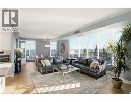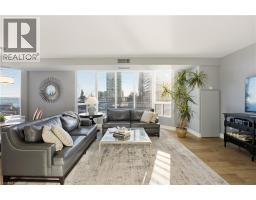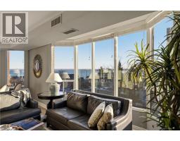 SW Corner Suite at 2121 Lakeshore Road - Burlington. Elevated, Serene, Turn-Key Living - Unit 603 delivers the perfect balance of sophistication, comfort, and location, with beautiful lake and city views as your everyday backdrop. Welcome to Unit 603 a beautifully renovated southwest corner suite in the heart of Burlington - offering lake and city views, abundant natural light, and refined finishes throughout. Elegant & Functional Living Spaces The open-concept Living & Dining Room creates a seamless flow - ideal for entertaining or quiet evenings at home. A separate Den offers a tranquil retreat to relax while enjoying the views. The Custom Kitchen features: - White cabinetry, Quartz countertops, Breakfast bar, Glass tile backsplash, LED pot lights, Stainless steel appliances, Private Bedroom Wing - with a charming hall library that leads to the private quarters. Principal Bedroom Retreat - with a Cozy sitting area framed by a bay window, Custom walk-in closet. Spa-inspired 3-piece ensuite with Quartz vanity, Step-in shower, Heated tile floors & a Linen Closet. Guests will enjoy the spacious 2nd bedroom with a beautiful bay window offering southwest views. The main bath mirrors the upscale finishes of the ensuite, complete with heated floors, quartz counters, and a step-in shower. Highlights of Unit 603: 2 Bedrooms + Den. Soaring 9-foot ceilings, Engineered hardwood flooring, Custom blinds, Tall Interior Doors & Trim, Custom Closets, Linen closets. In-suite laundry. 2 Parking Spaces + Locker. Building Features, Two elevators, Secure FOB lobby access, Visitor parking, Well-maintained building and landscaped grounds w/places to sit and relax. Unbeatable Location - Just steps to everything downtown Burlington: boutique shopping, cafés & restaurants, Burlington's Performing Arts Centre and Art Gallery, Waterfront Trail, Library, Seniors' Centre, Golf, recreation, transit, hospital & morel. Easy access to major highways. Elevated, Serene, Turn-Key Living. Welcome Home! (id:47351)