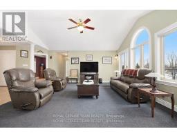 Executive Custom-Built Home Located on the South Branch of the Rideau River, this exceptional home offers approx 4800 square feet of space on a stunning 7+ acre waterfront property. Great opportunity for Multi Generational family living. Designed to capture breathtaking south-facing views, this home is perfectly positioned to enjoy spectacular morning sunrises and nature viewing from nearly every room. The main level boasts 2,400 square feet of open-concept living with vaulted ceilings in the great room and spacious eat-in kitchen and dining area and access to a four season sunroom. The kitchen features granite counter tops, cooktop and built in oven with generous cupboard space, including access to a butlers pantry .The main area also boasts a large primary suite with a walk-in closet and a 5 piece ensuite with a built-in vanity, . Additional rooms on the main level include 2 additional bedrooms , laundry room, mudroom and a 2 piece bathroom. A grand curved staircase leads to approx 1500 square feet of finished living space which includes a large rec room with a kitchenette/bar area, 2 well sized bedrooms, and a 5 piece bathroom which makes this area a self contained living space for relaxation or entertaining. Additional mechanical and Storage room .A highly efficient ground-source geothermal heating and cooling system combined with lower level in-floor radiant heating ensures energy efficient comfort all year round. The attached oversized two-car garage is insulated and provides inside access to both upper and lower levels, while a detached single car garage offers additional storage and workshop space. Outdoor living is just as impressive with a generous upper deck and a lower patio area overlooking the South Branch of the Rideau River. This rare executive home seamlessly combines energy efficiency and natural beauty, making it a truly exceptional find. To fully appreciate the property make sure to view the attached videos (id:47351)