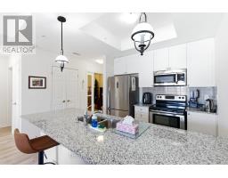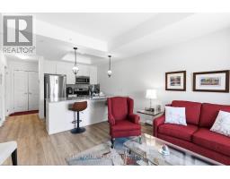 Welcome to your lakeside retreat at the sought-after Harbourside Condos in Port Whitby - Durham's best-kept secret. This rarely offered, freshly painted 1-bedroom + den suite features a smart layout, thoughtful upgrades, and beautiful views that offer both privacy and sunshine, perfect for enjoying your morning coffee on the covered balcony. The modern kitchen is designed for both cooking and entertaining, complete with quartz countertops, stainless steel appliances, and a microwave/range hood above the stove. A breakfast bar overlooks the open-concept dining area and spacious living room, with a walkout to the balcony that creates a seamless flow for everyday living. The large primary bedroom offers laminate flooring, a walk-in closet, and peaceful views. The versatile den is ideal for a home office, guest space, or exercise area. Additional features include in-suite laundry, a pantry, linen storage, owned underground parking, and a generous locker conveniently located directly behind the parking space. Enjoy lakeside living with walking trails, fresh air, and the marina just steps from your door. Residents also enjoy access to a social pavilion with a kitchen, lounge, and BBQ area - perfect for entertaining or connecting with neighbours. With ample visitor parking and close proximity to amenities and the GO Station, this is an unbeatable location. Den image has been virtually staged. (id:47351)