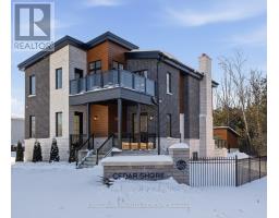Unlock the door to an elevated lifestyle in Cobourg's prestigious new Cedar Shores development, where luxury & location converge perfectly! A standout feature of this sought-after setting is the beautiful walking trail that leads to Monk's Cove Park & the Lake Ontario shore, placing nature & recreation right at your door. The home itself features 10 ft ceilings throughout & was thoughtfully designed with multi-generational living in mind, highlighted by a self-contained in-law suite with private entrance. The interior makes an immediate statement with a bright, open foyer leading to an impressive great room with towering 20 foot ceilings, floor to ceiling windows & a stylish linear fireplace providing a seamless connection to the outdoors. The open-concept culinary space features stainless steel appliances, quartz surfaces, ample cabinetry & a generous island, making it the heart of the home. The convenient & spacious laundry room is just off the kitchen & offers a walkout to the back patio, while the main-floor office with its own entrance & ensuite provides an ideal workspace or accessible bedroom. Upstairs, the refinement continues with a catwalk landing overlooking the great room below. The primary suite features an enormous walk-in closet, a walk-out to private balcony, & a spa-like ensuite, complete with soaker tub, glass shower & dual vanity. The two additional upstairs bedrooms enjoy the privilege of their own private ensuites. Downstairs, the fully finished lower level is equally impressive, offering a full kitchen, bedroom, full bathroom, living area, separate laundry room, 2 cold rooms & a powder room. With a walk up to the rear yard offering a private entrance for in-laws or guests. Outside you will find numerous spaces to enjoy while unwinding or entertaining, with the large patio overlooking green space & a spacious detached, 3-bay garage. Close to downtown & the waterfront, this property sets a new standard for modern living. (id:47351)