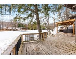 Welcome to your private waterfront retreat on Sydenham Lake, offering an incredible 312 feet of shoreline tucked into its own quiet bay just off the main lake. This protected shoreline provides the calm waters ideal for swimming, fishing, docking, and year-round lake enjoyment. Outdoor living is at its finest with a wraparound deck showcasing lake views and a stunning limestone patio designed for entertaining at the water's edge. Unwind in the hot tub beneath a custom-built gazebo after a day on the lake. This property also includes a double-car garage, a fully paved driveway, and a newly built storage building-providing ample storage for vehicles, tools, and recreational equipment. The home has been extensively renovated and thoughtfully updated. The custom-designed kitchen features granite countertops, a large island, and solid oak flooring-perfect for gathering and entertaining. Two beautifully updated bathrooms including a spa-inspired ensuite with a glass shower and deep, stand-alone soaking tub-an ideal retreat after a day outdoors. Additional upgrades include a new steel roof, siding and stone exterior, and new windows and flooring. A complete list of improvements is available upon request. This is a rare opportunity to own a truly exceptional waterfront property on Sydenham Lake-where privacy, modern comfort, and four-season recreation combine to create an unforgettable lakeside lifestyle. (id:47351)