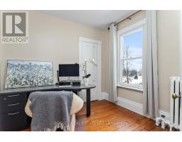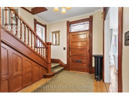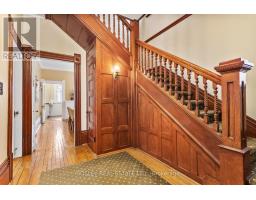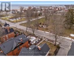 Captivating, 216 Church Street is an exquisite 3 storey heritage home, a classic representation of Queen Anne style architecture, built circa 1898. Enjoy a clear view of Lake Ontario and Victoria Park from the 250 sq. ft. wrap-around covered verandah, a typical style feature of its era. As you enter, immediate comfort flows throughout, from the large principle formal living room with bay window offering views of the Lake, to the spacious dining room, main floor office/flex room, kitchen and butler's pantry and a sun lit family room that offers views of the perennial gardens and historic Carriage House. The second floor continues the old-world charm of the main floor with beautiful architectural details, a large primary suite with bathroom, 3 additional bedrooms and full 3pcs bath. A sure surprise, the finished 3rd level is a great space to get creative, provide a fun and adventurous area for your children, overflow bedrooms for guests or simply provide a hide away to rest and take in the lake breeze in peace. The basement provides space for the laundry room, work bench and ample general storage. The house enjoys access to a private driveway (off King Street). In keeping with its heritage character, this exquisite property also includes a 2-storey 1,000 sq. ft. Carriage House. While once used for a horse and carriage, it now functions as a multi-purpose space providing room for a single-car garage and work bench on the main floor and offering a blank space in the skylit second floor that can be used for many purposes. The exterior historic features of the property have been faithfully maintained and preserved: asymmetrical design, wraparound porch, tall chimney, brick-faced main floor, clapboard upper floors with scalloped shingles. One of a kind in the heart of Cobourg, stunning park and lake views all year round and eye catching streetscape unlike any other niche location in downtown Cobourg's Heritage District. (id:47351)