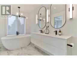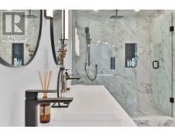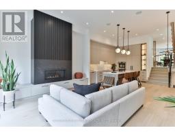 Luxury living in the heart of Etobicoke. This meticulously crafted residence showcases elevated design and exceptional attention to detail throughout. Soaring ceilings create an immediate sense of space, while the inviting living area is anchored by a cozy fireplace-perfect for relaxing winter evenings. Elegant Kentwood hardwood flooring flows throughout the home, beautifully complemented by striking white oak feature walls. The chef-inspired kitchen by Cameo Kitchens is the true centerpiece, blending style with modern functionality. It features sleek European cabinetry, premium Fisher & Paykel appliances, a 42-inch integrated fridge, double wall ovens, and an induction cooktop. Dishwasher drawers are seamlessly integrated into the island, creating a streamlined space ideal for both everyday living and entertaining. The sun-filled dining area offers an expansive setting for hosting family and friends. Upstairs, the primary suite serves as a private retreat, complete with a coffered ceiling, a cozy sitting area, custom dressing room, and a spa-inspired ensuite featuring a soaker tub, double vanity, oversized rain shower, and heated floors. A convenient second-floor laundry room adds to the home's thoughtful design. Smart home technology enhances daily living with integrated speakers, Google Nest climate control, and security cameras for added peace of mind. The lower level offers a refined basement retreat perfect for entertaining, while the backyard oasis is designed for unforgettable gatherings. Situated on a quiet, family-friendly street in desirable South Etobicoke, this home offers quick access to major highways, transit, parks, excellent schools, and the lakefront. A rare blend of luxury, comfort, and cutting-edge design-this is truly a one-of-a-kind place to call home. (id:47351)