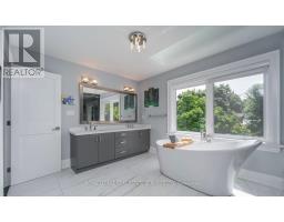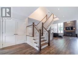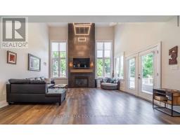 Custom built in 2018 and nestled in one of Burlington's most desired neighbourhoods, 2163 Deyncourt Drive offers a seamless blend of luxury, comfort, and modern living. Situated on a premium 60' x 142' north-west facing lot on a quiet street in Central Burlington, this home is designed for both everyday living and effortless entertaining. The main level showcases a living room with soaring cathedral ceiling, a dramatic gas fireplace, and a French door walkout to the deck, creating a bright and inviting atmosphere. The gourmet kitchen is a true centrepiece, complete with quartz countertops, designer backsplash, premium stainless steel appliances, and an oversized 8' island with breakfast bar, flowing seamlessly into the dining area. A dedicated main floor office provides the perfect space for working from home. Upstairs, the private primary retreat offers a luxurious escape with a walk-in closet, two-sided gas fireplace, and a spa-inspired five-piece ensuite featuring a skylight, double sinks, freestanding tub, steam shower, and heated floor. Two additional bedrooms, a family room, beautifully appointed five-piece main bathroom, and a convenient laundry room complete the upper level. The finished basement extends the living space with a recreation area, fourth bedroom, laminate flooring, and a three-piece bathroom - ideal for guests or extended family. Step outside to your private backyard oasis, featuring a custom deck with hot tub and an interlock patio, perfect for relaxing or entertaining. Additional highlights include expansive windows that flood the home with natural light, engineered hardwood flooring throughout the main and upper levels, multiple walkouts, and a full irrigation system. Ideally located close to Burlington's vibrant downtown core, Spencer Smith Park, the lake, major highways, and the GO Train, this exceptional home delivers the perfect balance of luxury, convenience, and lifestyle. (certain images have been digitally enhanced) (id:47351)