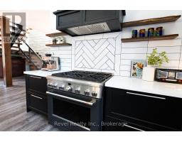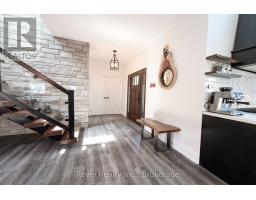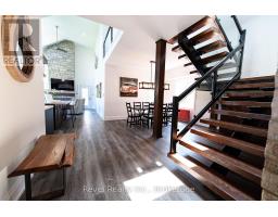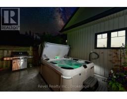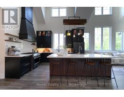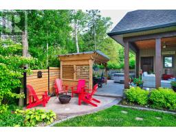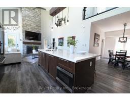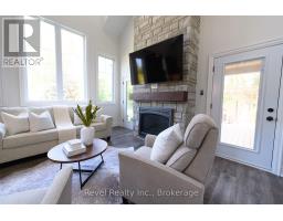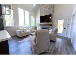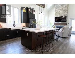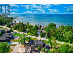 Custom-Built Craftsman Home with Water Views in West Wasaga Beach. Stunning 3-bedroom, 3-bathroom, 1,800 sq. ft. home, 5 years new, across from a beach access point. Designed for comfort, efficiency, and style, blending modern luxury with timeless charm. Inside, you'll find an airy open-concept main floor with 19-foot ceilings, floating staircase with glass railings, skylight, and striking stone feature wall. Gourmet kitchen with an 8-ft quartz island, GE Café Series appliances including a 6-burner gas range and built-in Keurig fridge, illuminated cabinetry, and a custom range hood. Living room features a Napoleon gas fireplace, framed by a stone wall and oversized windows that offer water views. Custom-designed 10-light fixture highlights the spacious dining area. Main floor primary suite features a walk-through mirrored closet, a spa-inspired en-suite with heated floors, double vanities, large glass shower with rainfall and handheld shower heads, and a European-style floating toilet. Upstairs, you'll find two bedrooms (one a flexible Murphy bed/office space), a full bath with a double vanity and rainfall tub/shower. Luxury finishes include Canadian-made vinyl plank flooring with cork underlay, LED pot lights, ceiling fans in all bedrooms, and cast iron and low-profile radiators connected to a radiant hot water system with on-demand heating. Energy-saving features include triple-pane windows, a Life Breath air exchange system, solar panels, and a Type 2 EV charger. Additional comfort with two ductless heat pump/AC units. Outdoor living spaces are exceptional: a composite front porch with stone entrance, a side porch with glass railings, outdoor blinds, ceiling fan, gas fireplace; stamped concrete walkways and patios; a lighted gazebo; and a fully landscaped yard with gardens, fruit trees, oak and maple trees, sprinkler system, and solar lighting. Includes 7-8 person Bullfrog Hot Tub, Gas BBQ Connection, privacy fencing. Garage is insulated, heated. (id:47351)