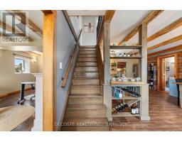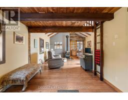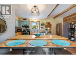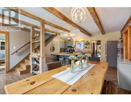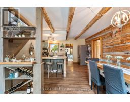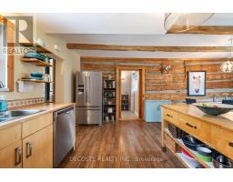 Relax and embrace the country lifestyle! This century-old log home has been lovingly renovated over the years while preserving the warmth and character that make it truly unique. From the moment you step inside, you'll be charmed by the rustic details- exposed interior logs, wood-beamed ceilings, and wide pine board flooring that all tell the story of a home with history. The main floor is both inviting and functional. The heart of the home is the great room, featuring a vaulted ceiling and a wood stove that fills the space with cozy warmth. Patio doors open onto an expansive deck where you can enjoy peaceful mornings, summer barbecues, or evenings under the stars. The kitchen, with its movable center island, is designed for both everyday living and entertaining, flowing seamlessly into the dining area. A beautiful 4-piece bathroom with a claw-foot tub and a comfortable living room complete the main level. Upstairs, you'll find four generously sized bedrooms and a convenient 2-piece bathroom, offering plenty of space for family and guests. Extensive work has been completed in the basement, making it a practical area for storage. Outside, the property continues to impress with a large shed that provides ample storage or the opportunity to convert it into a double car garage. This home is the perfect mix of old-world charm and modern comfort, offering a retreat in the country while keeping all the essentials close at hand. (id:47351)