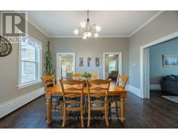 Charming and spacious, this updated 5-bedroom, 2-bathroom century home offers a generous layout on a 0.4-acre lot with a fenced backyard, plenty of parking and tar and chip paving, and a detached double garage/workshop. Across from Centennial Park with its stunning gardens and located in the growing community of Dutton just 30 minutes from London with easy 401 access, this property combines timeless character with modern updates. The main floor features a formal living room with crown molding, windows and laminate floors, a bedroom/home office, family room, and sunroom, along with access to a second staircase. The updated kitchen (2021) includes a tile backsplash, included appliances, ample cabinetry, and countertop space, opening to a wraparound porch and deck with a hot tub and gazebos. The fenced backyard with a shed offers privacy and lots of entertaining space. A mudroom, with cabinets, a laundry room with shelving and sink and a renovated 3pc bathroom (2021) complete the main level. Upstairs, you'll find four total spacious bedrooms with laminate flooring and closets, boasting a large primary with an insulated ceiling and a walk-in closet/sitting room. The upper 4pc bathroom features a jacuzzi tub and linen closet. The detached, insulated double garage/workshop is ideal for hobbyists or car enthusiasts, featuring a propane heater, built-in storage shelving and an automatic garage door. Notable updates include a steel roof on the garage and kitchen addition, all vinyl windows, gutter shields, spray foam insulation, most hot water radiators, a central vacuum, owned on on-demand water heater and electrical outlets. Enjoy all Dutton has to offer: public school, community centre, splash pad, pool, library, medical office, gym, businesses at 174 Currie, restaurants, and more just a short walk from your door. Don't miss this opportunity to enjoy small-town living with big-time value! (id:47351)