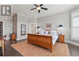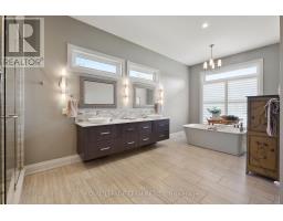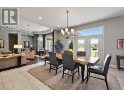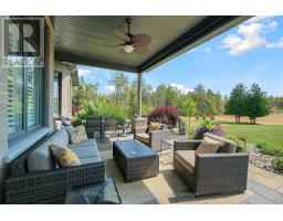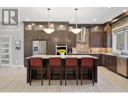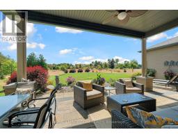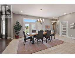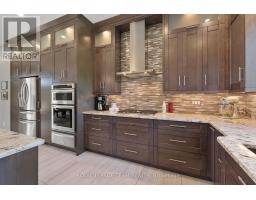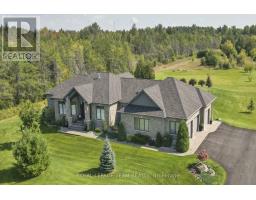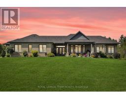 Welcome to this executive-style bungalow offering refined luxury and timeless design on a beautifully landscaped 2+ acre country lot. Impeccably built with a stately stone and brick exterior; this home exudes sophistication with warmth from the moment you arrive. The covered front porch and elegant glass entry open to soaring tall ceilings, rich hand-scraped hardwood floors, and expansive transom windows that flood the home with natural light. The open-concept living space centers around a striking double-sided fireplace and flows seamlessly into the designer Deslaurier kitchen, a true showpiece featuring full-height custom cabinetry, granite countertops, built-in stainless steel appliances, and a grand island with seating for four; perfectly designed for entertaining or for everyday living. The spacious primary suite offers a tranquil retreat with large windows, a walk-in closet, and a spa-inspired ensuite showcasing dual vanities and contemporary finishes. Additional bedrooms and a main-floor office and cozy den provide flexibility for family or remote work. Enjoy the relaxed country air outside under a covered 16 x 36 back patio with discreet power sunscreen, while looking out onto manicured lawns, lush gardens, and a completely private backdrop, ideal for gatherings or peaceful evenings as the sun sets. An attached oversized 4 car garage with extra tall insulated doors, direct basement access, a fully paved driveway with decorative lit stone pillars, and impeccable attention to detail complete this exceptional rural property. Experience the perfect blend of luxury, comfort, and craftsmanship in this remarkable bungalow. Truly a home to fall in love with! Welcome Home! (id:47351)