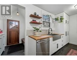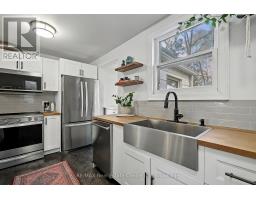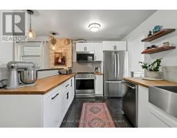 Charming Circa 1912 home in the heart of the downtown core. This home has been beautifully renovated throughout, offering an open concept main level with a gourmet style kitchen, that includes timeless white cabinetry, sleek stainless steel appliances, butcher block counter top, and a casual breakfast bar...plus eye catching exposed brick. Original hardwood flooring flows seamlessly through the dining area, and in to the cozy living room, filled with streams of natural light. Upstairs, 3 generous sized bedrooms are perfect for a growing family, and an updated bath tops off this incredible home. Outdoors, relax on your private deck, with a fully fenced yard, ideal for the kids at play. Just steps to Eramosa River Park, you can take in a volleyball game, paddle downstream in your kayak, or simply enjoy nature, with the walking trails that surround this fantastic area! (id:47351)