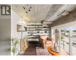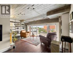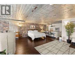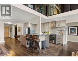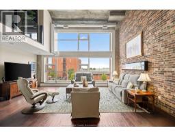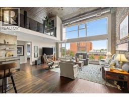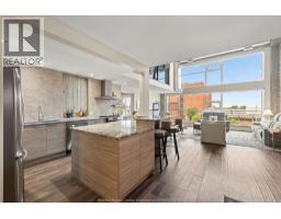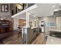 This 2 storey industrial-chic condo seamlessly blends luxury and history, featuring exposed brick, ambient lighting, and solid wood doors. The chef’s kitchen features custom Naylor cabinetry, including sleek push-button uppers, and is complemented by a spacious walk-in pantry. Storage is abundant with a large main floor laundry room, three additional storage closets, and—just across the hall—a private 7.5 x 12 ft storage locker, the largest available in the building, reserved exclusively for the largest units (2795 sqft). Soaring north-facing windows flood the space with natural light and showcase panoramic views of Olde Walkerville’s historic rooftops. The upper level has been transformed into a private, sky-high escape—complete with a spacious bedroom, a stunning bath with wet room and a lounge overlooking the Detroit skyline. The main floor offers a generous second bedroom with walk-in closet and 4-piece ensuite bath. Contact for list of extensive upgrades. (id:47351)