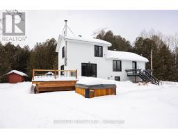 If serenity and privacy are what you've been searching for, look no further! This charming split-level home with a detached garage and garden sheds sits on approximately 24.5 acres of beautiful countryside. A private driveway leads you to this secluded gem, surrounded by mature apple trees, gardens, and a peaceful mixed bush setting. The home offers 3 bedrooms on two levels and 1 fully renovated bathroom. The compact yet highly functional kitchen is conveniently located next to the dining area. Just off the kitchen, you'll find the spacious primary bedroom and a modern 4-piece bathroom. Adjacent to the dining room is the bright lower-level living room, featuring a cozy wood-burning stove and large windows that fill the space with natural light. The upper level includes two additional generously sized bedrooms. Recent renovations and upgrades include new windows and doors, new siding with added insulation, a new heat pump, new flooring throughout, a beautifully updated kitchen with new cabinets and appliances, and a completely renovated bathroom. Step outside to enjoy the impressive two-level wraparound deck with patio door access from the living room-perfect for relaxing or entertaining while taking in the surrounding nature. This property offers abundant space, privacy, and wildlife for the whole family to enjoy - a true country paradise! (id:47351)