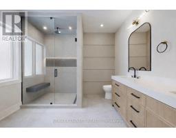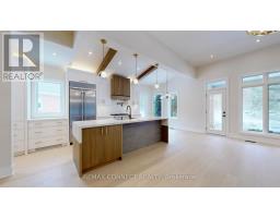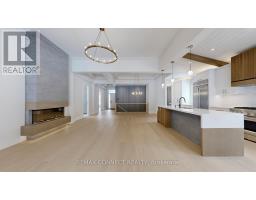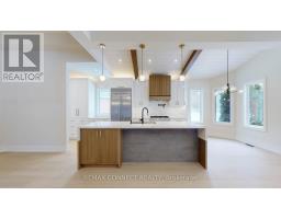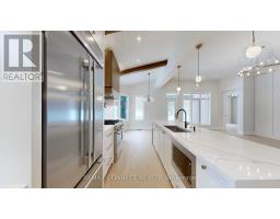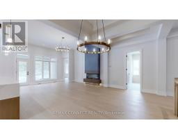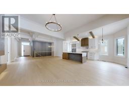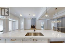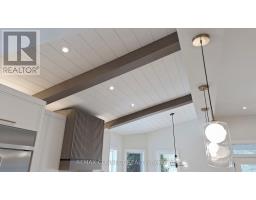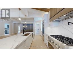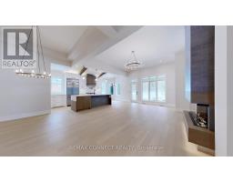 This fully renovated home offers a rare combination of craftsmanship and contemporary design. Updates include new hardwood flooring throughout. Custom kitchen boasts soft white cabinetry with oak accents, built-in appliances, and a unique waterfall island with breakfast bar, quartz countertops and backsplash. Beamed ceilings and a cozy eating area make this kitchen spectacular. All this overlooks the beautiful living room/dining room with floor to 11' ceiling 3-sided Dimplex fireplace, stylish feature walls, open oak and wrought iron staircase to the basement, designer light fixtures, and moulded ceilings. The primary bedroom has beamed ceilings and a beautiful feature wall. The redesigned ensuite & dressing area is a show stopper, complete with freestanding tub, huge custom shower with niche and recessed lighting, double sinks, and beautiful oak vanity. The dressing area is completely built in with interior lighting. The bright and spacious main floor laundry has loads of cupboards, laundry tub, quartz counters and pantry. The separate mudroom has built-in cabinetry with a bench and plenty of storage, and easy access to the garage. New stylish exterior doors. All new interior doors that have been raised to 90". All new trim and baseboards, smooth ceilings, upgrades to electrical. Undermount lighting on all cabinetry. No detail has been left untouched. The backyard is one of the most private and largest in the community. The huge pie backs onto the forest, with a side view of the golf course, all on a quiet cul-de-sac with quick easy access to Ninth Line. (id:47351)