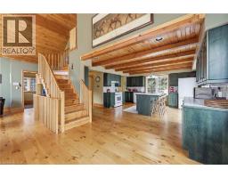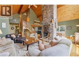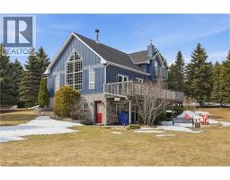 Experience the ultimate alpine lifestyle in this stunning ski-in/ski-out chalet, perched at the top of Mansfield Ski Club on a quiet crescent, just over an hour outside of Toronto. Make this your home or vacation house. Situated on a private lot of just under 1 acre with ample parking, this property is designed for family fun and year-round enjoyment. The heart of the chalet is a dramatic A-frame great room boasting soaring pine cathedral ceilings and expansive window views of the Escarpment. The space features warm pine floors anchored by a magnificent floor to ceiling double sided stone finished wood-burning fireplace. The open-concept main floor flows seamlessly into the kitchen, which features wood cabinetry, a large center island, four appliances, and a walk-in pantry. Sliding doors lead to an expansive deck with a Weber BBQ—the ideal spot for après-ski gatherings. A cozy, carpeted separate den and a 2-piece powder room round out the main level. The upper level offers a peaceful retreat with two large, carpeted bedrooms a 4-piece bathroom with jetted tub and separate shower; the primary suite even boasts its own private balcony. The lower level is built for a crowd, featuring two additional large bedrooms, a second 4-piece bathroom, and the warmth of a Vermont Castings wood-burning stove. Perfect for active families, the dedicated ski/mudroom with separate ground-level entrance provides direct access to the slopes for a true doorstep-to-chairlift experience. Mansfield outdoor center just down the road enjoy cross-country skiing, snowshoeing, hiking, and biking. Book your private showing today!!!! (id:47351)